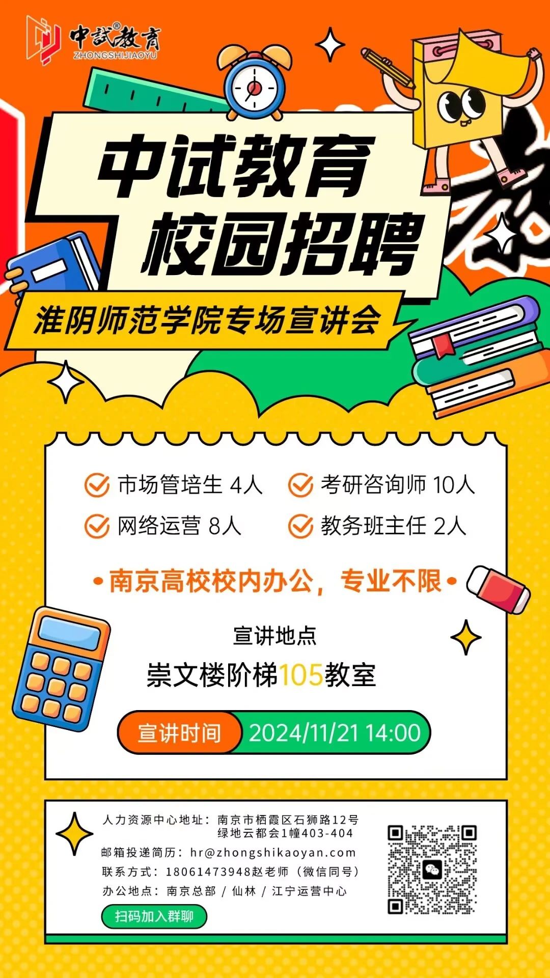 宣讲会 | 放宽“薪”,办大事—南京中试教育2024年秋季校园宣讲会