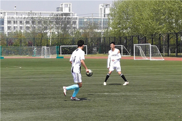 体院新闻网4月17日电(记者 魏彩迪)中午十二点三十分,足球场上有两支队伍正在热身准备投入比赛,他们是1701与1704。