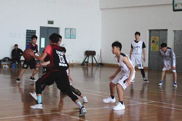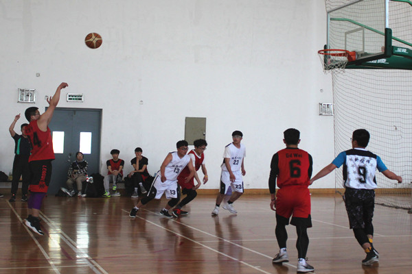 12点半的时候,球员们已经到场做着准备活动。随着裁判的哨响,整个球场就充满了紧张的气氛,球员的激情全都淋漓尽致的体现在篮球场上。比赛进程中,各位队员都全力以赴,积极防守、积极进攻,越战越勇,显示了他们极佳的心理素质。在场同学也情绪高涨、摇旗呐喊,不时为队员打气、喝彩,气氛热烈。赛场上的,双方拼抢很激烈,带球、运球、投篮等一系列动作潇洒、规范,引来围观同学一阵阵地喝彩。