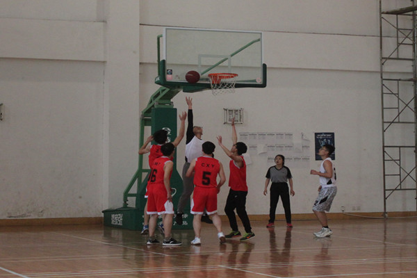 随着裁判的哨响,整个球场散发出一种紧张的氛围,各位球员都全力以赴,积极防守,积极进攻,越战越勇,双方拼抢十分激烈,带球、运球、投篮等一系列动作潇洒,球员们的激情在场上挥洒得淋漓尽致,在场的人员也情绪高涨,不时为球员加油打气,气氛热烈,双方比分一度十分接近。
