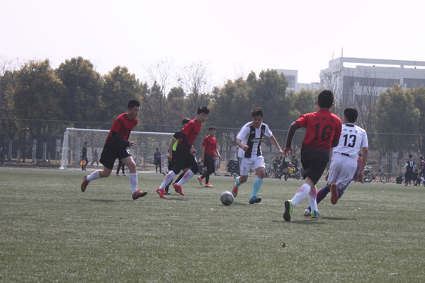随着哨声响起,各队球员配合跑动起来,活力十足,正如这宜人的天气,球赛进行的十分顺利,1701的学长们以6:1的成绩赢得比赛。1604与1703则是0:0打平。