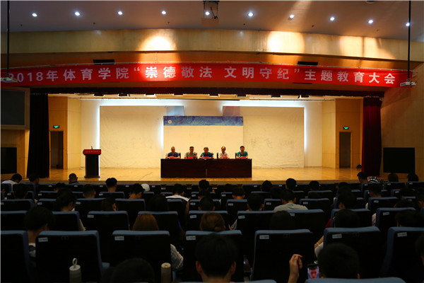 体院新闻网电(记者 朱慧 邱蕾)2018年6月11日晚上,开云手机版登录入口在图书馆报告厅展开了一场以“崇德政法,文明守纪”为主题的教育大会。