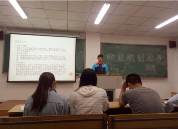 教室里的灯光洒在每一位参赛者的自信的脸上,随着PPT的不断更换,参赛者们用简洁的语言表达他们对成长的期盼,梦想的渴望,未来的规划。每一位参赛者,在讲述了自己的职业生涯规划后,那张朝气蓬勃的脸便更加坚定了自己的理想信念。台下观众也为他们精彩的演讲拍手叫好。