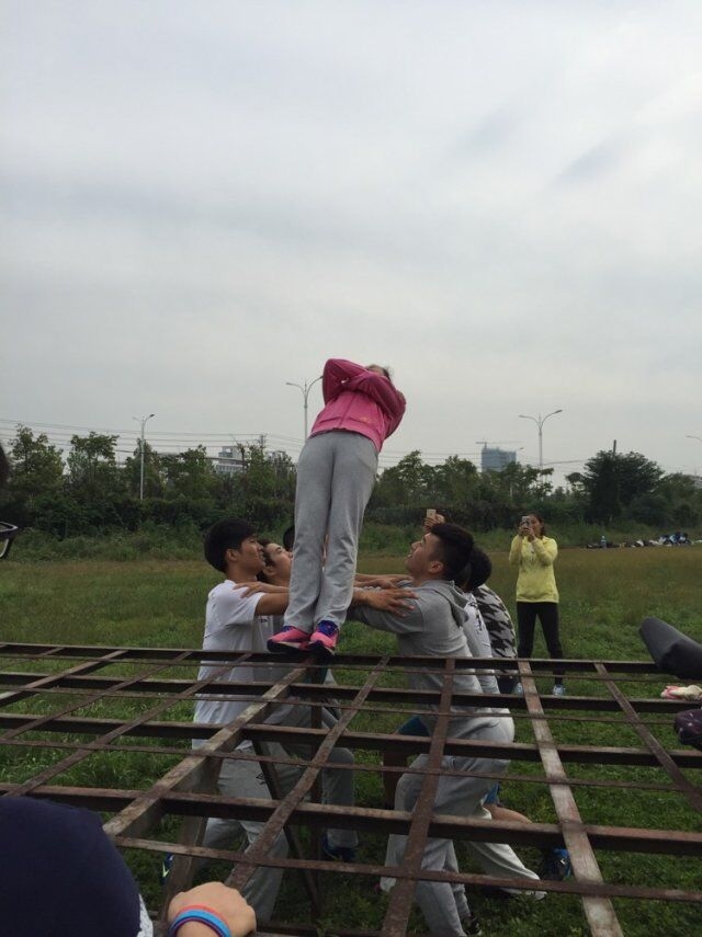 本次团日活动通过“万众一心”、“信任背摔”、“人体小火车”的游戏培养了同学的团队协作和相互合作的能力。也通过一些小比拼提高同学们的积极性和良性竞争。