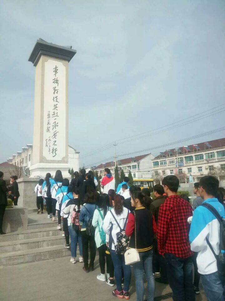 为悼念革命烈士,弘扬民族精神,2016年4月1日下午,开云手机版登录入口1301班组织同学来到淮安市淮阴区车桥镇车桥战役纪念广场缅怀革命先烈。 在庄严肃穆的的纪念碑前,同学们聆听了车桥战役作战经过,并向革命烈士三鞠躬,表达对烈士6的沉痛悼念、缅怀之情。随后,同学们参观了车桥战役烈士事迹展览馆。车桥战役,新四军牺牲54人,消灭日伪军近千人,敌我伤亡比例如此之大,创造了抗日战争的神话。 此次活动不仅让学生体会到如今的幸福生活来之不易,更有利于学生珍惜以后的生活。
