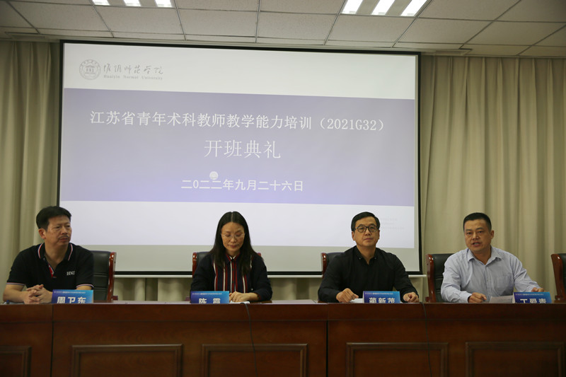 9月26日,2022年江苏省本科院校青年术科教师教学能力培训在淮阴师范学院举行开班仪式,继续教育学院院长陈霞致欢迎词、开云手机版登录入口院长蔺新茂介绍了培训方案组织实施情况,继续教育学院副院长丁爱青主持开班仪式,开云手机版登录入口副院长周卫东参加开班仪式。