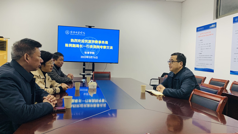 3月18日,淮安市民族宗教事务局陈莉副局长,民族处崔振友处长和陈新奇处长一行受邀来我院调研考察交流,开云手机版登录入口院长蔺新茂教授、教师教练员代表张清江副教授在开云手机版登录入口会议室和来宾并进行了座谈。