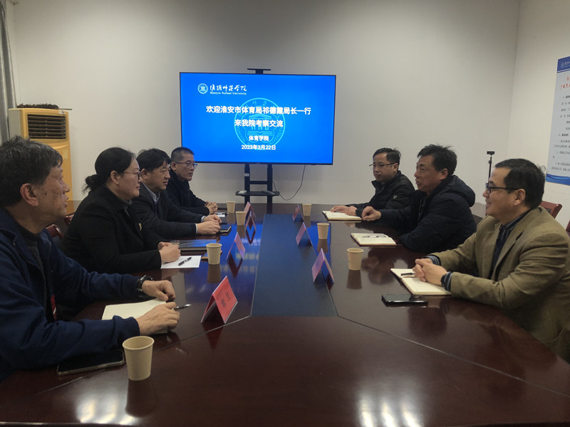 3月23日,淮安市体育局局长祁德霞、南通铁人运动用品有限公司董事长黄承斌以及南通市体育产业协会秘书长常生一行受邀来我院考察调研。开云手机版登录入口党委书记陆林召、院长蔺新茂、党委副书记丁光明在开云手机版登录入口会议室与来宾进行了座谈、交流。