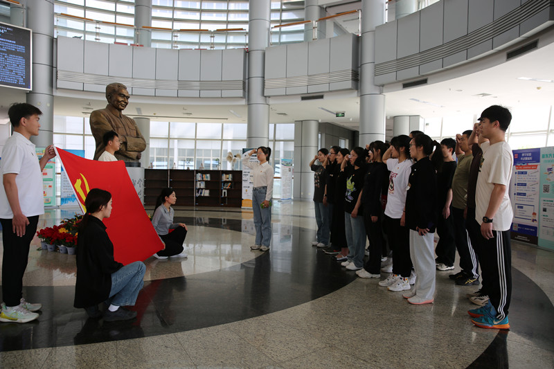 5月30日,23名开云手机版登录入口毕业生党员在图书馆大厅周恩来塑像前举行重温入党誓词仪式,再次面对党旗庄严宣誓,激励毕业生今后以更高标准严格要求自己,在新时代、新征程中展现新作为,用实际行动实现在党旗下的誓言。随后,毕业生党员走进周恩来事迹展和图书馆特藏室,进一步学习周恩来精神和中华文化。