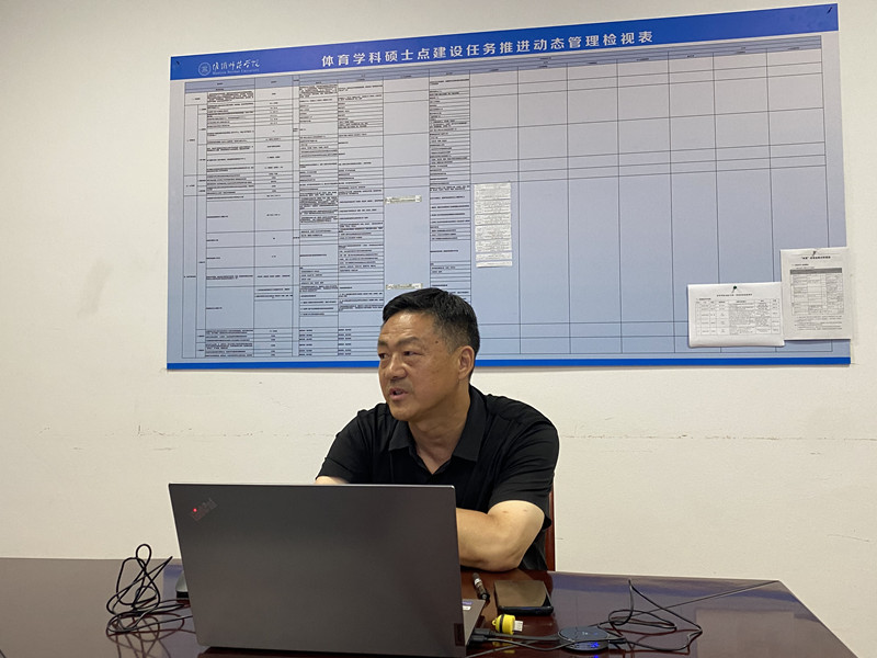 任亚东以“新时期体育核心素养模型构建与研究”为题进行主旨汇报,从选题依据、研究现状、研究创新点、研究方法与框架、难点与解决办法、理论与实践意义等方面进行了详细阐释,并提出“一体两翼”的体育核心素养模型构建新体系。与会教师围绕选题、体育核心素养指标体系维度、评价标准等方面进行深入讨论。