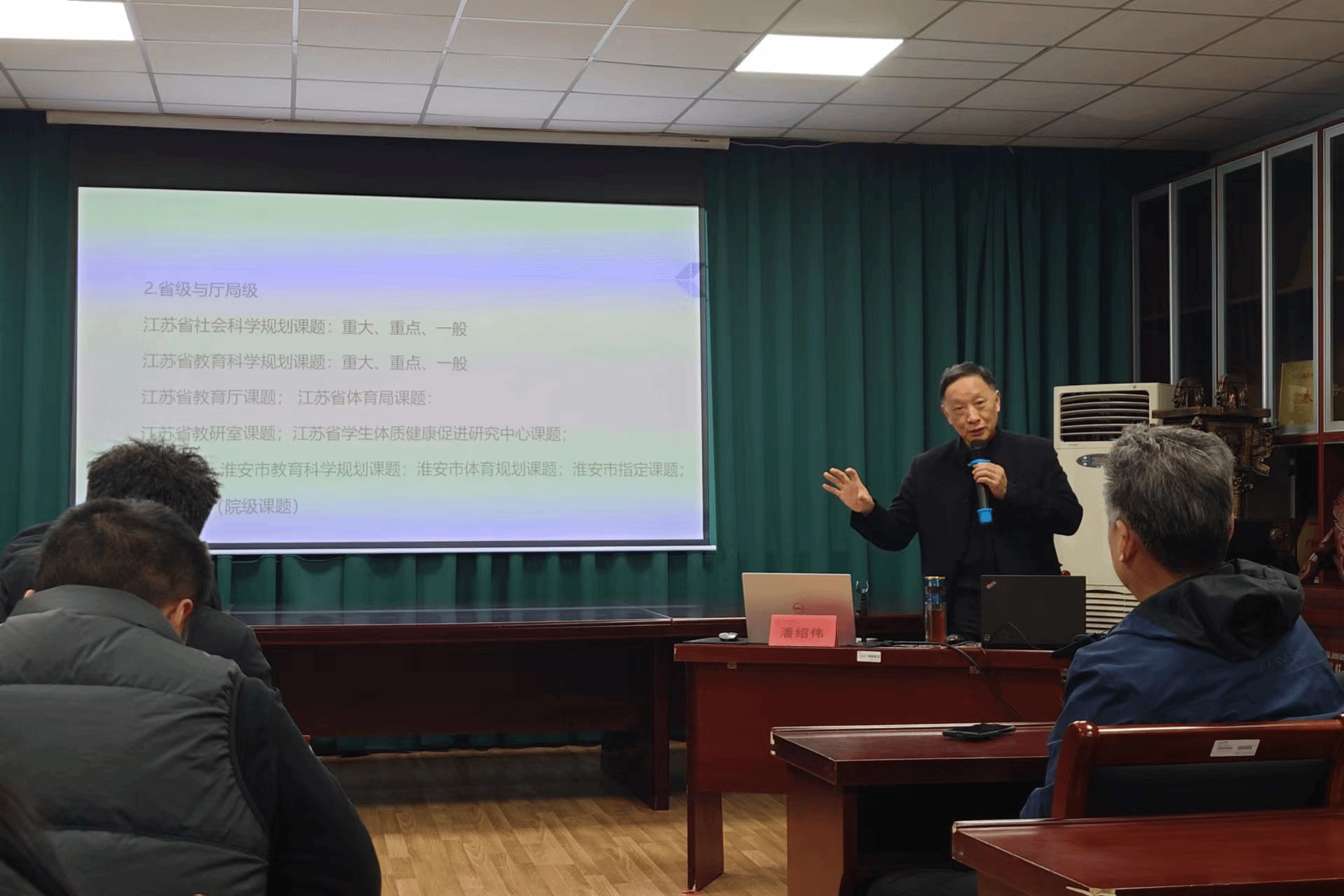 为进一步推进开云手机版登录入口有组织科研,凝聚力量、打造队伍,2024年1月15日下午15.00,教育部全国高等学校体育教学指导委员会委员、中国体育科学学会学校体育专业委员会委员、扬州大学二级教授、扬州大学体育科学学院院长潘邵伟教授在我院大会议室举行《科学研究课题撰写与申报技巧》专题讲座。
