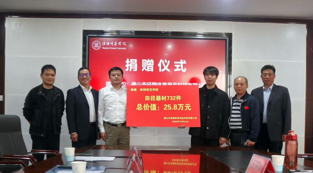 王新斌先生向淮阴师范学院捐赠田径器材732件,市场价值25.8万元。