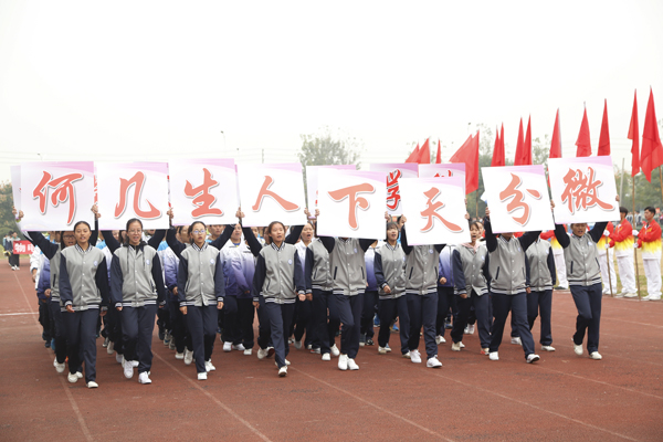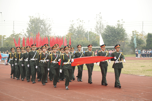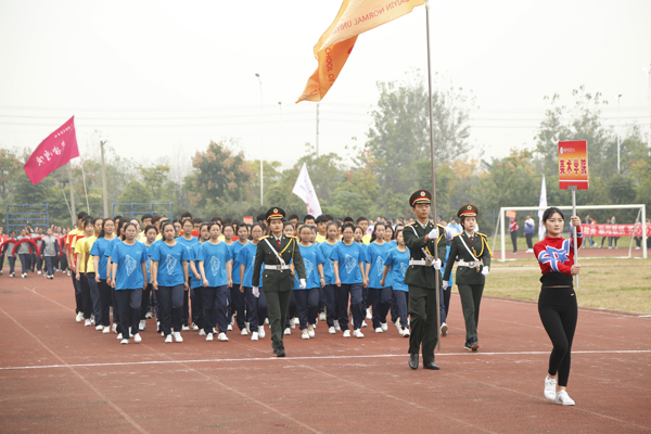 在雄壮的运动员进行曲中,国旗、校旗、会徽、军鼓乐团、铜管乐团、彩旗、裁判员等方阵依次入场。来自研究生院及17个二级学院的运动员代表方阵迈着矫健的步伐,朝气蓬勃地走过主席台。